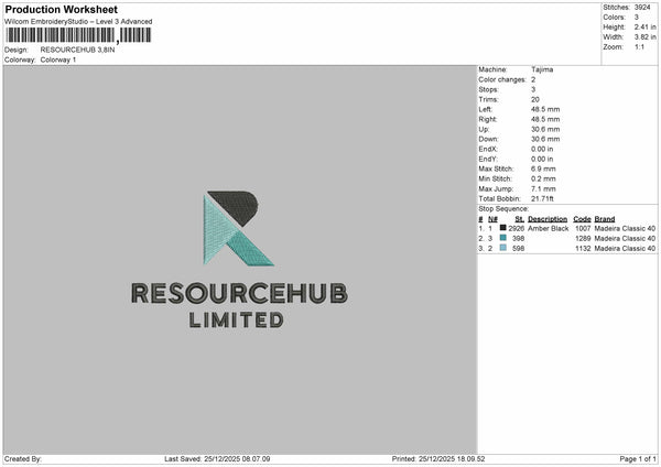 RESOURCEHUB Logo Embroidery File 6 sizes