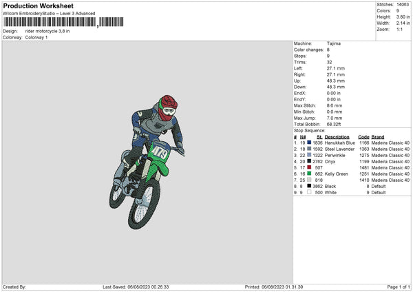 Rider Motorcycle Embroidery File 6 sizes
