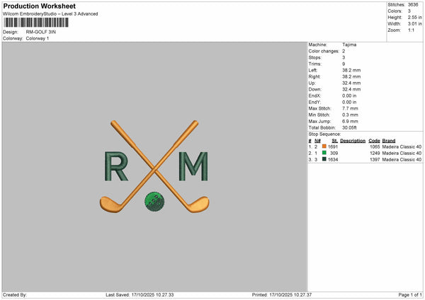 RM_GOLF Embroidery File 4 sizes