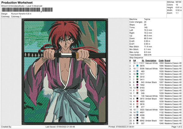 Rurouni Kenshin Embroidery File 4 size