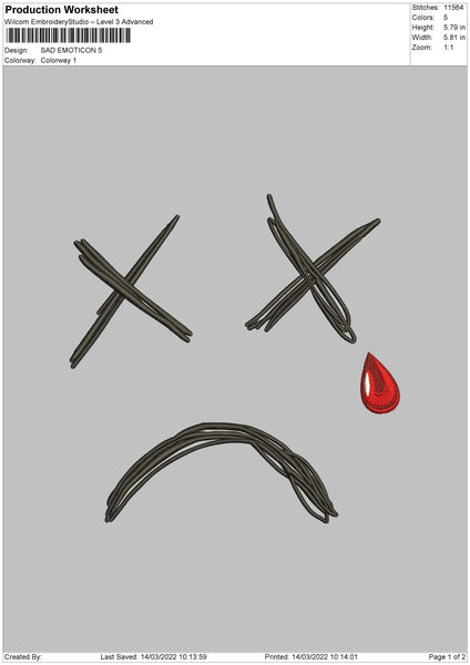 Sad Emoticon Embroidery File 4 size