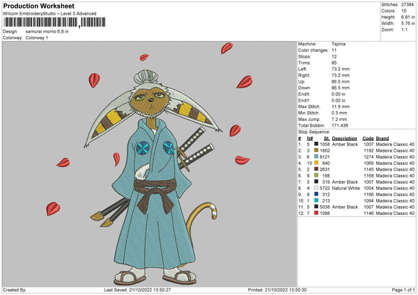 Samurai Momo Embroidery File 6 sizes