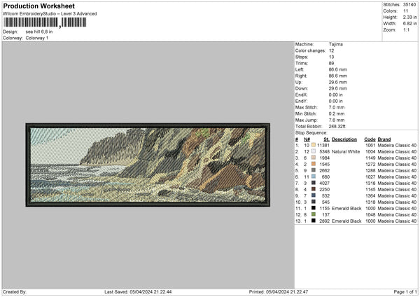 Sea Rectangle 02 Embroidery File 6 sizes