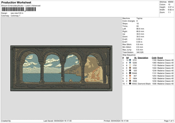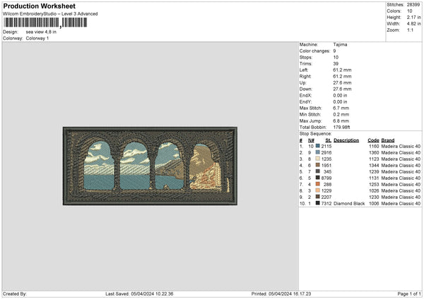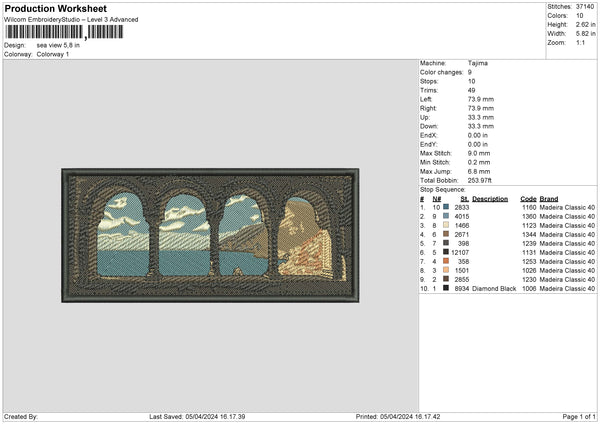 Sea Rectangle Embroidery File 6 sizes