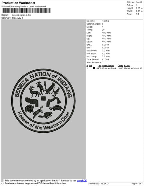 Seneca Nation Embroidery File 4 size