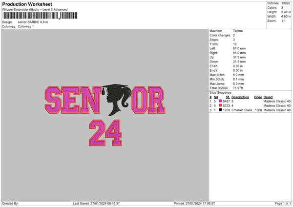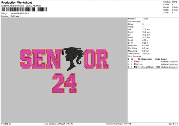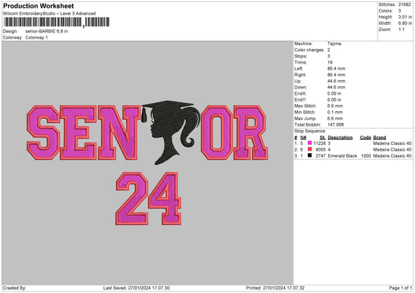 Senior Girl Embroidery File 6 sizes
