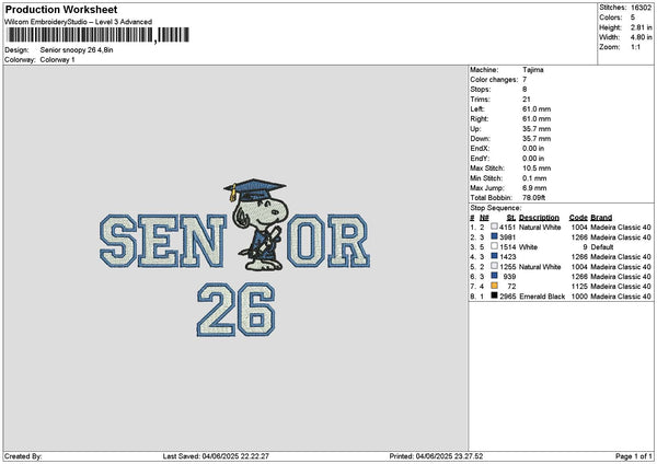 Senior Snoopy 26 27 Embroidery 2 Files