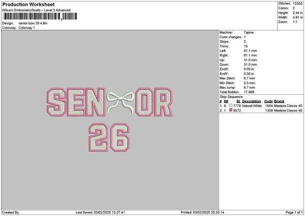 Senior26 Bow Embroidery File 6 sizes