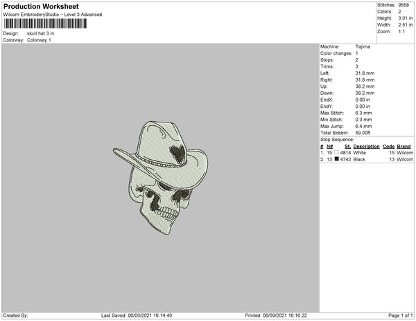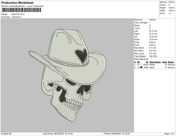Skull Hat Embroidery File 4 size