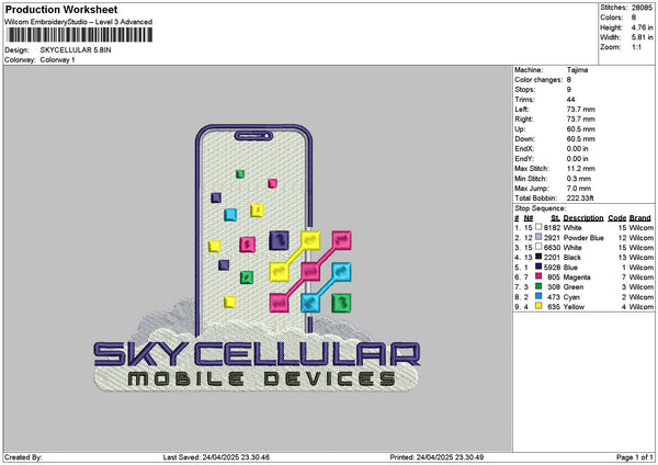 Skycellulartext Embroidery File 6 sizes
