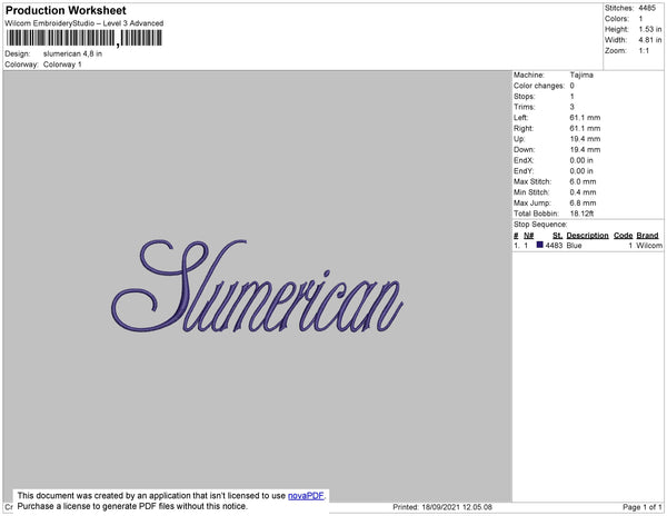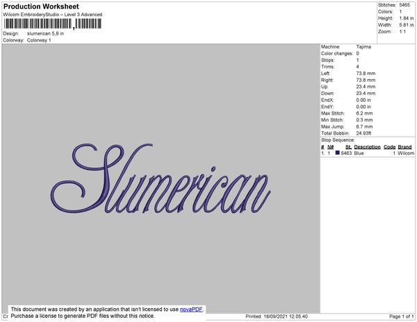 Slumerican Embroidery File 4 size