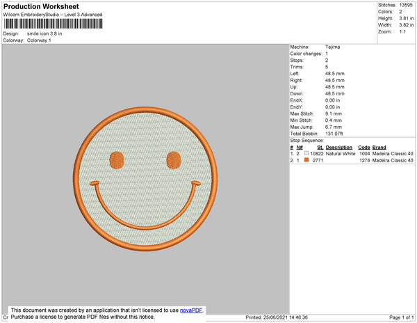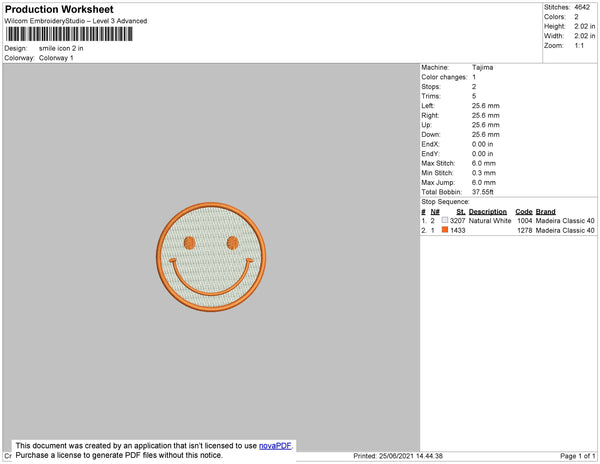 Smile Icon Embroidery File 4 size