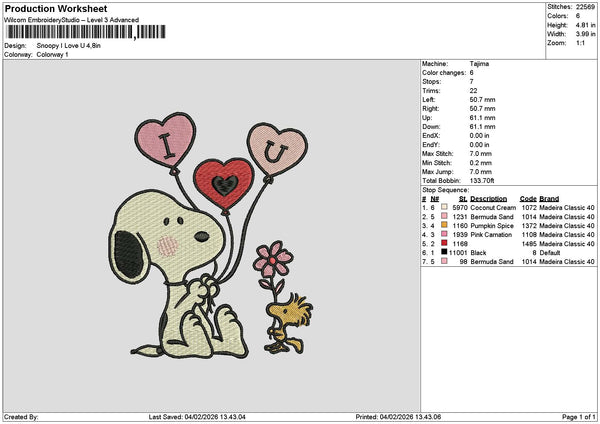 Snoopy Love 0402 Embroidery File 6 sizes