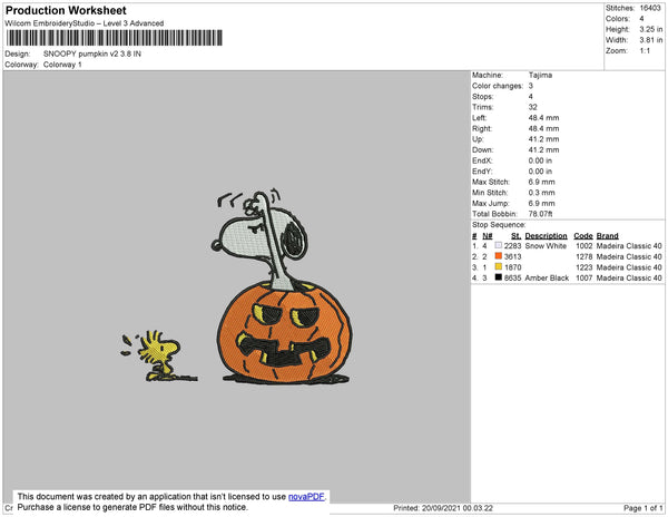 Snoopy Pumpkin V2 Embroidery File 4 size