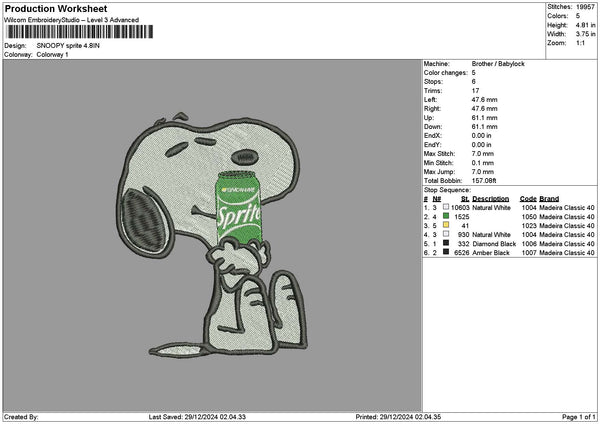 Snoopy Sprite Embroidery File 6 sizes