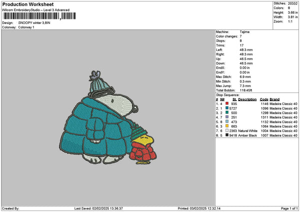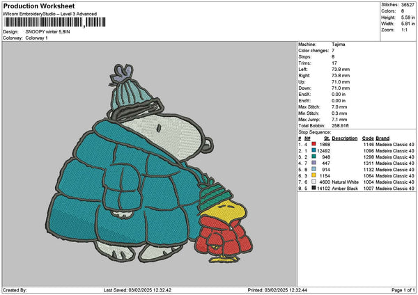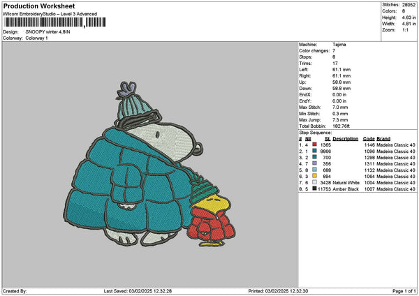 Snoopy Winter 0302 Embroidery File 6 sizes