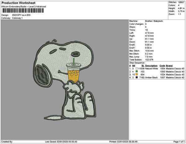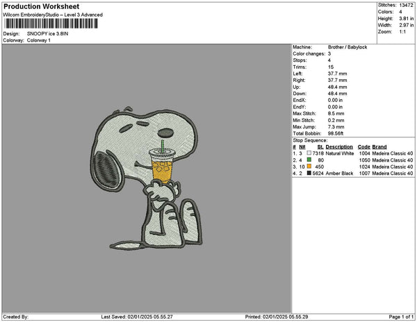 Snoopyice Embroidery File 6 sizes