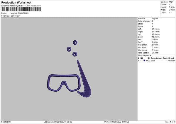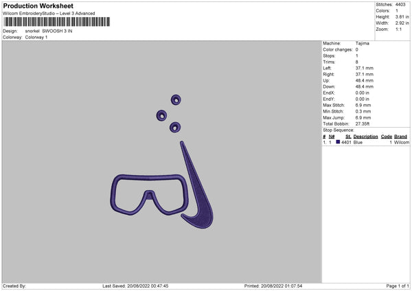 Snorkel Swoosh Embroidery File 5 sizes