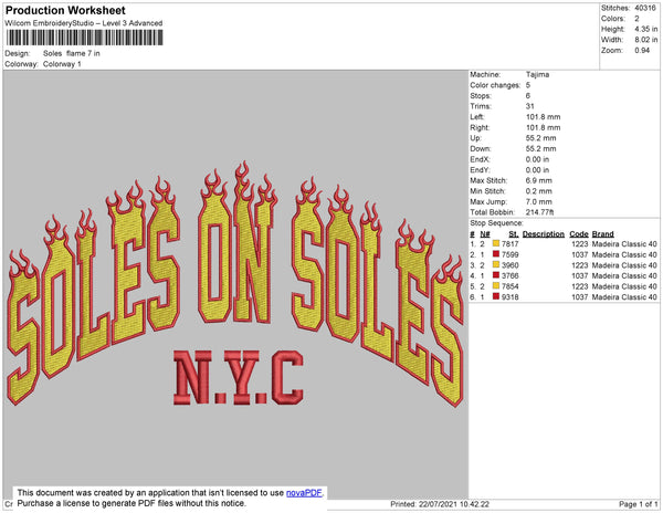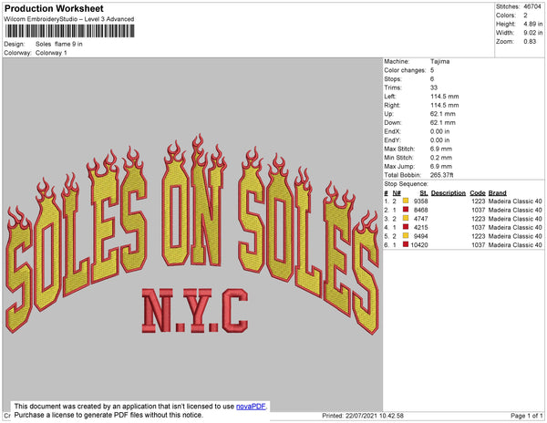 Soles Flames Embroidery File 4 size