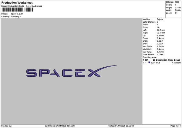 Spacetext X Embroidery File 6 sizes