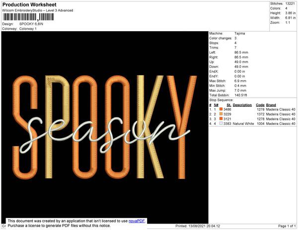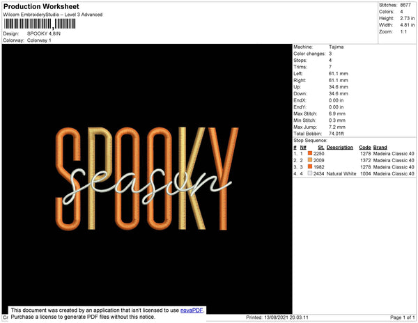 Spooky Text Embroidery File 4 size