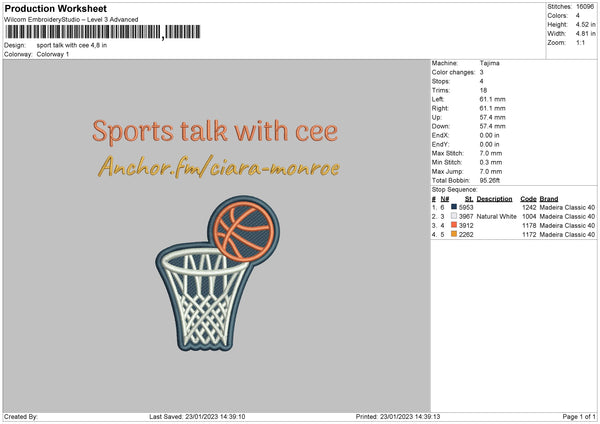 Sport Talk Embroidery File 6 sizes