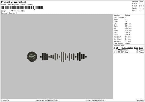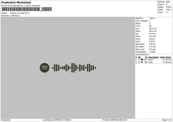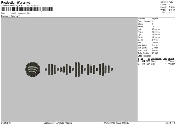 Spotify Run Away Embroidery File 6 sizes