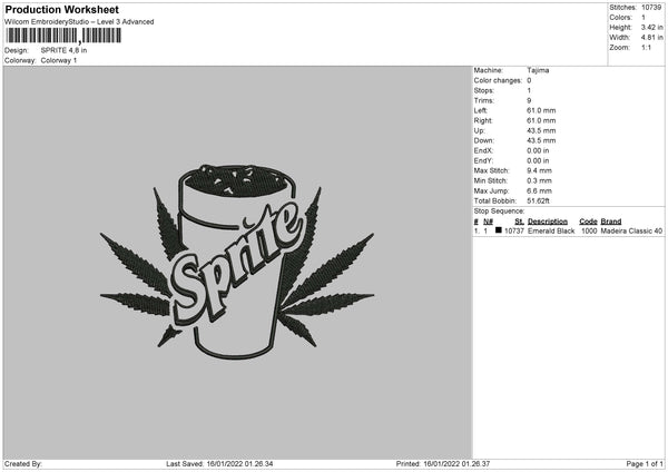Sprite Embroidery File 4 size