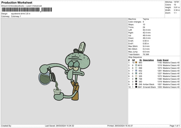 Squid Drink Embroidery File 6 sizes