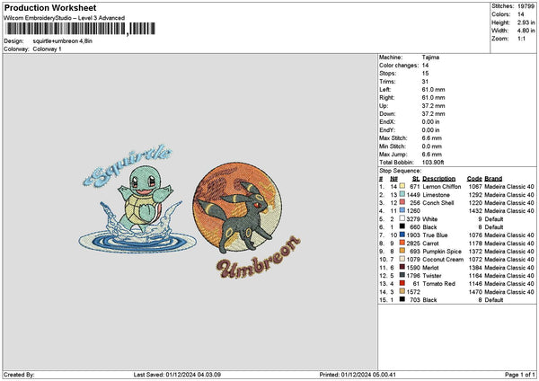 Squirtleumbreon Embroidery File 6 sizes