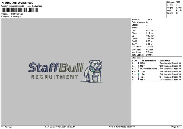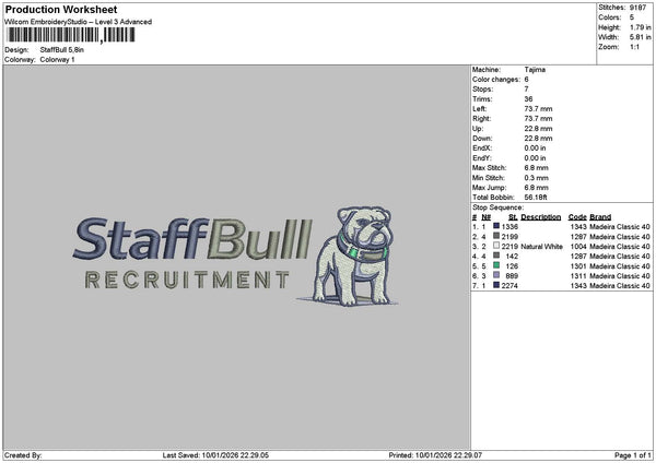 Staffbull Text Embroidery File 6 sizes