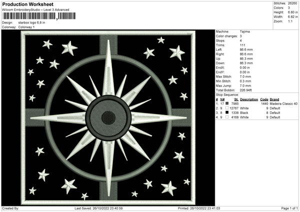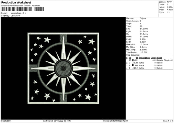 Starbox Logo Embroidery File 6 sizes