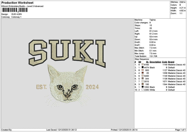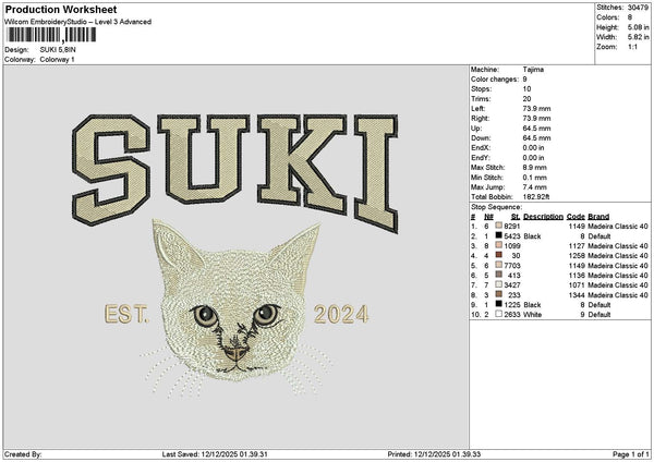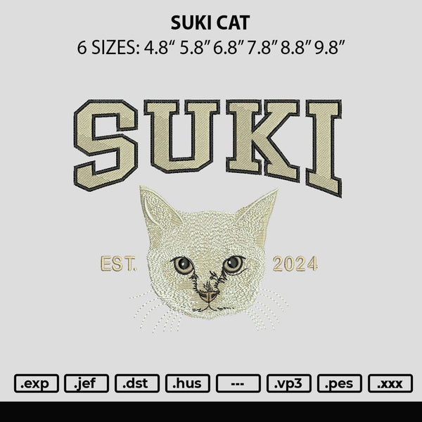 Suki Cat Embroidery File 6 sizes