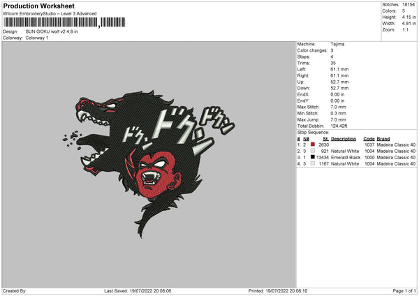 Sun Goku Wolf V2 Embroidery File 4 sizes