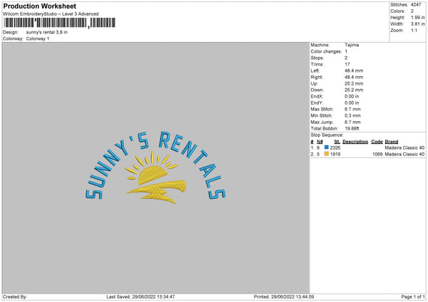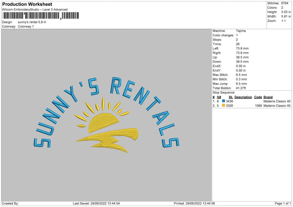 Sunny's Rental Embroidery File 4 sizes