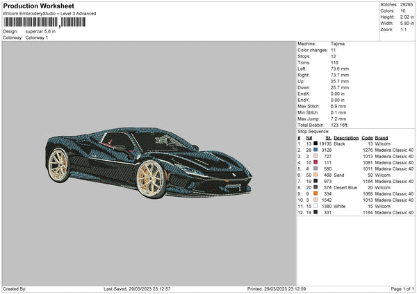Supercar Embroidery File 6 sizes