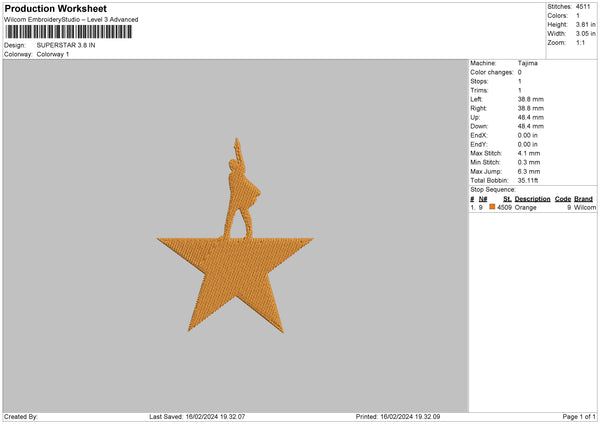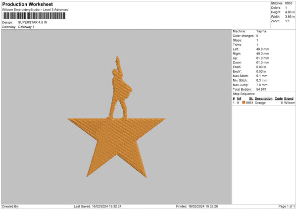 Superstar Embroidery File 6 sizes
