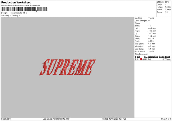Supreme Italic Embroidery File 6 size