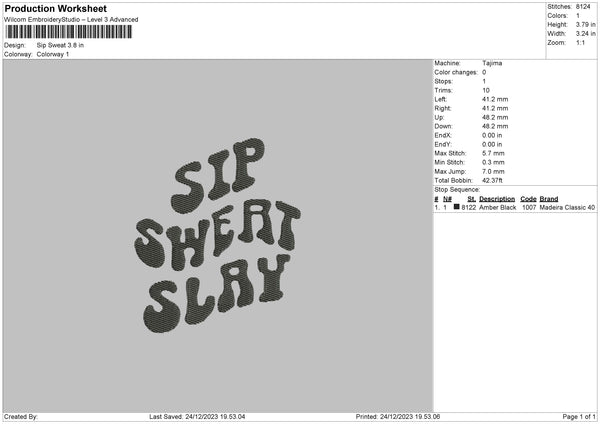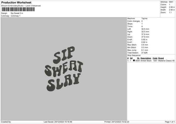 Sweat Text Embroidery File 6 sizes