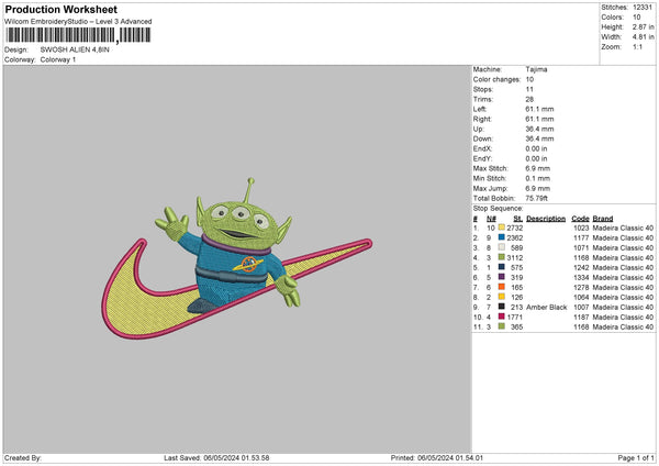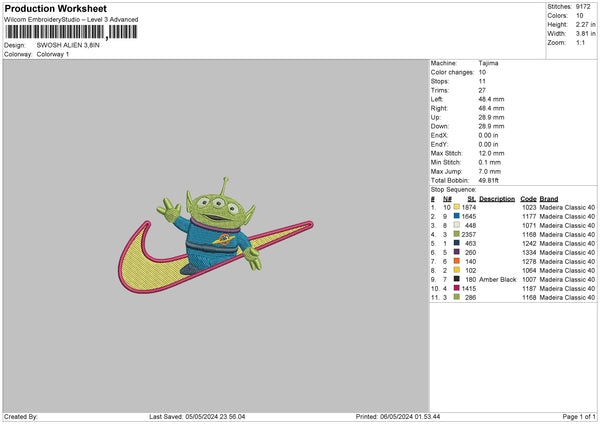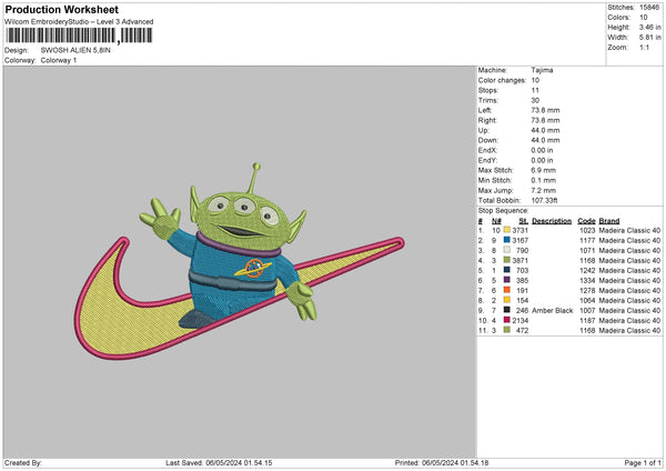 Swoosh Alien 0605 Embroidery File 6 sizes