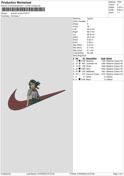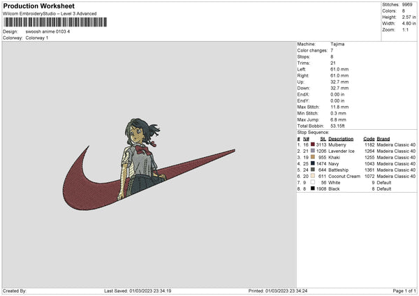 Swoosh Anime 0103 Embroidery File 6 sizes