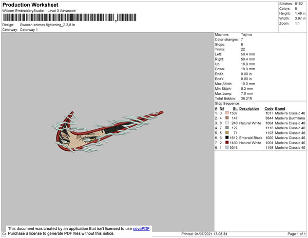 Swoosh Anime Lighting 02 Embroidery File 4 size