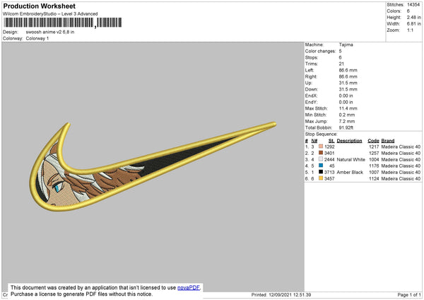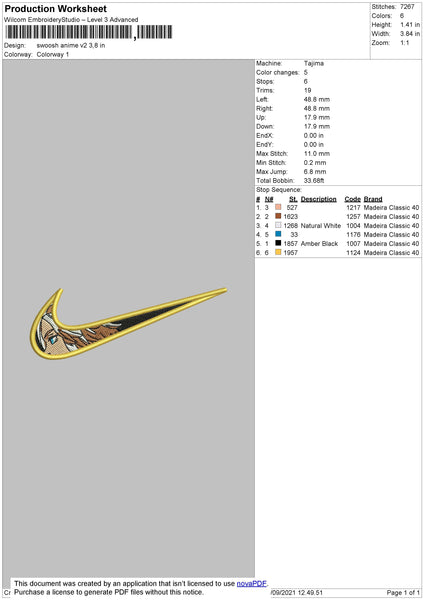 Swoosh Anime V2 Embroidery File 4 size