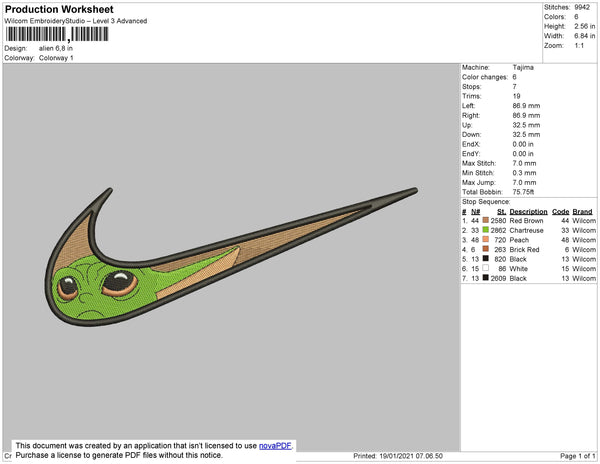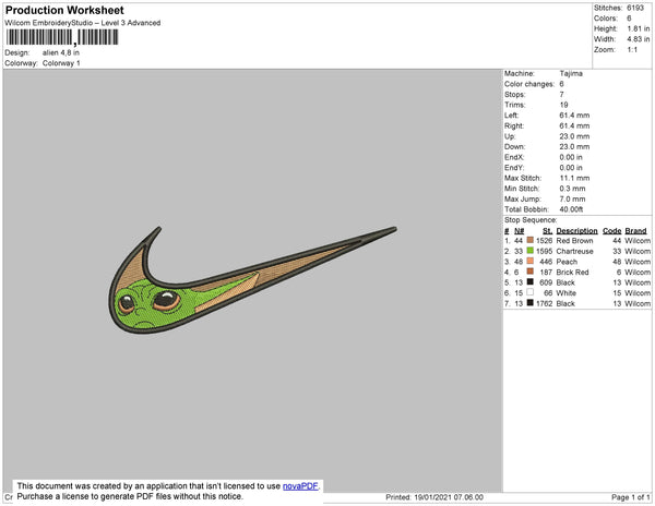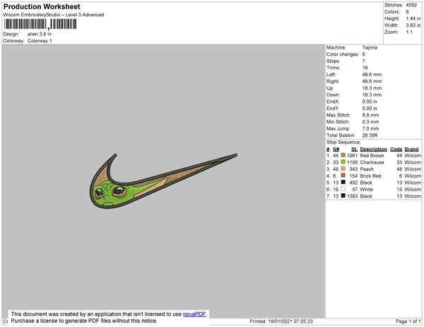 Swoosh Baby Yoda 01 Embroidery File 4 size