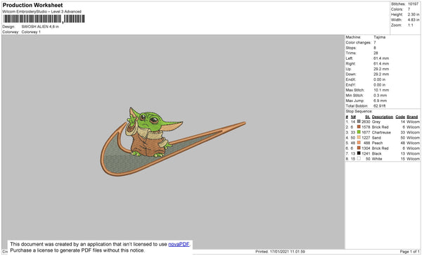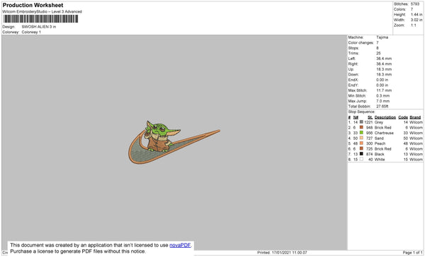 Swoosh Baby Yoda 02 Embroidery File 4 size