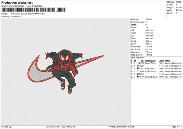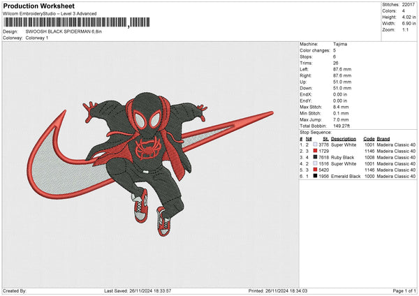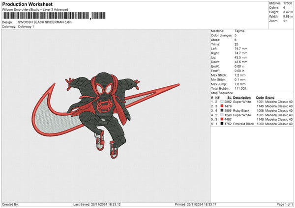 SWOOSH BLACK SPIDERMAN Embroidery File 6 size