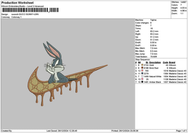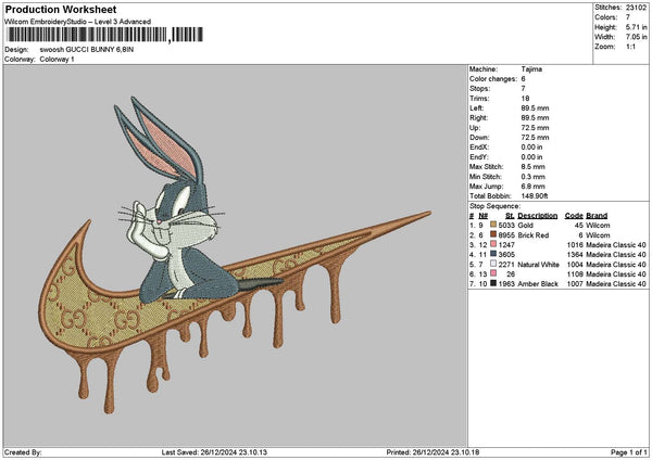 Swoosh Bunny Melt 01 Embroidery File 6 sizes