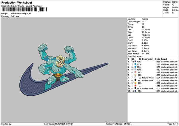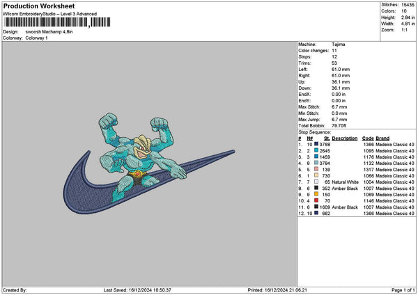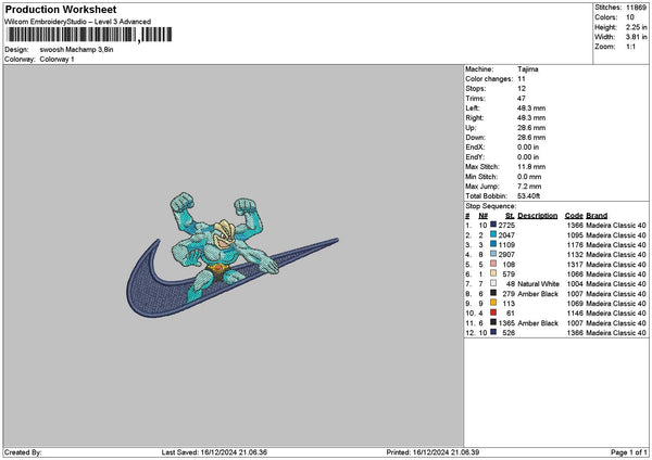 Swoosh Machamp Embroidery File 6 sizes