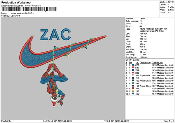 Swoosh spiderxmas 2312 Embroidery File 6 sizes