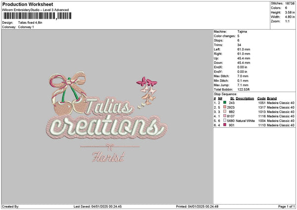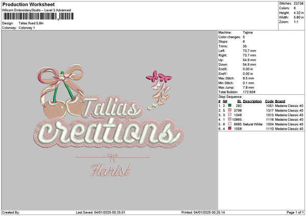 Taliastext Embroidery File 6 sizes